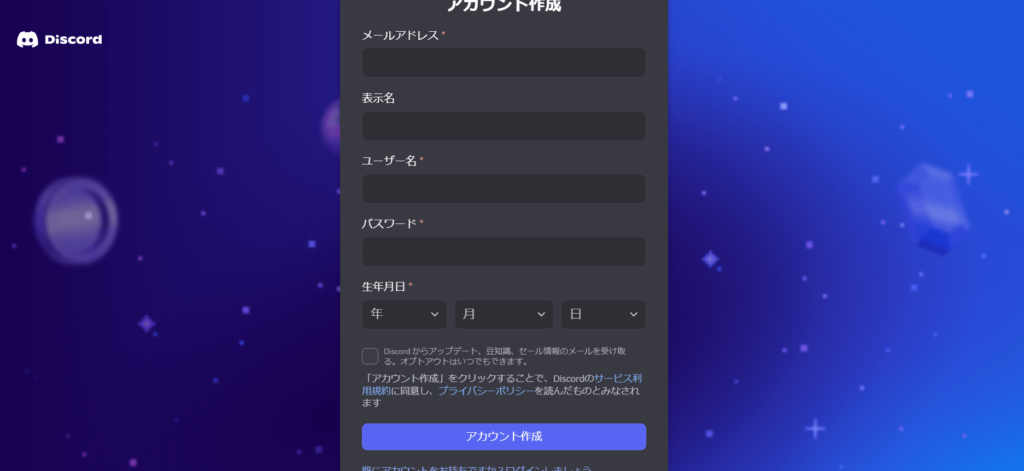 MidjourneyはDiscordと連携して利用するため、まずはDiscordのアカウントが必要です。
