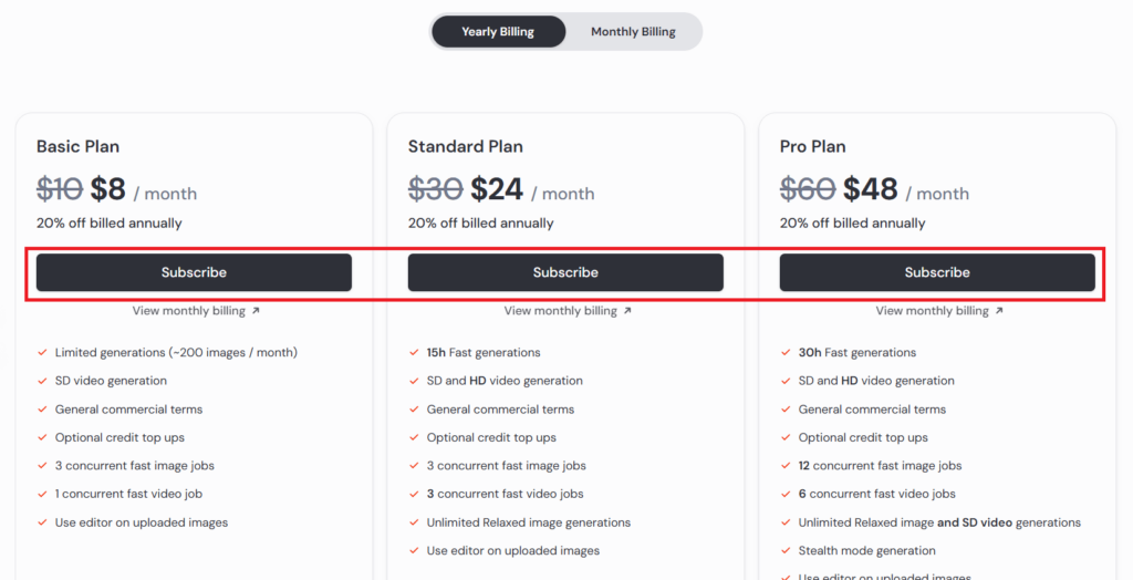 ※Midjourneyの料金プランについては、詳しくはこちらをご覧ください。
