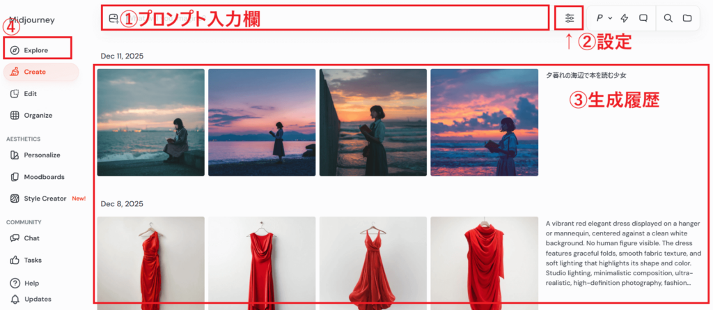 また、Proプラン以上でステルスモードをオンにしていない限り、生成した画像は公式サイトのギャラリーに公開されます。