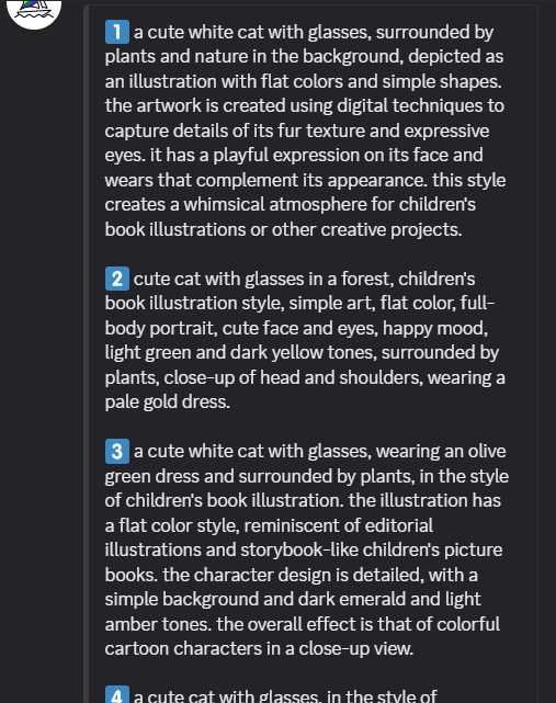 Midjourneyは公式にシンプルで短いプロンプトが適しているとの見解を表明していますので、極力単純なプロンプトで生成するのが良いでしょう。