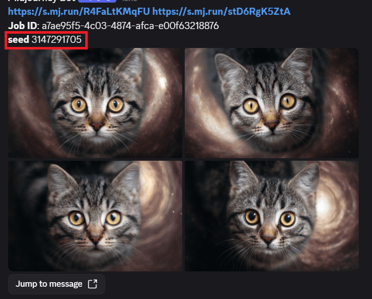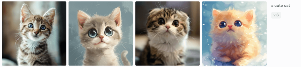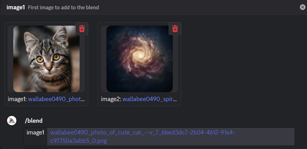 - 「/imagine」と入力し、続けて「a cat」のような簡単な英語のプロンプト(指示文)を送るだけで、すぐに画像が作れる!