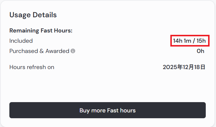 「今月はたくさん生成したい」という場合、Fast GPU時間を追加購入することもできます。