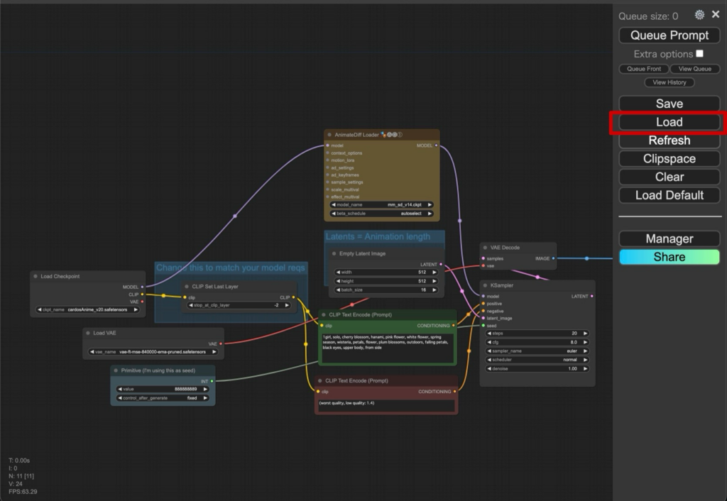 2.ComfyUI上でダウンロードしたファイルを「Load」します。