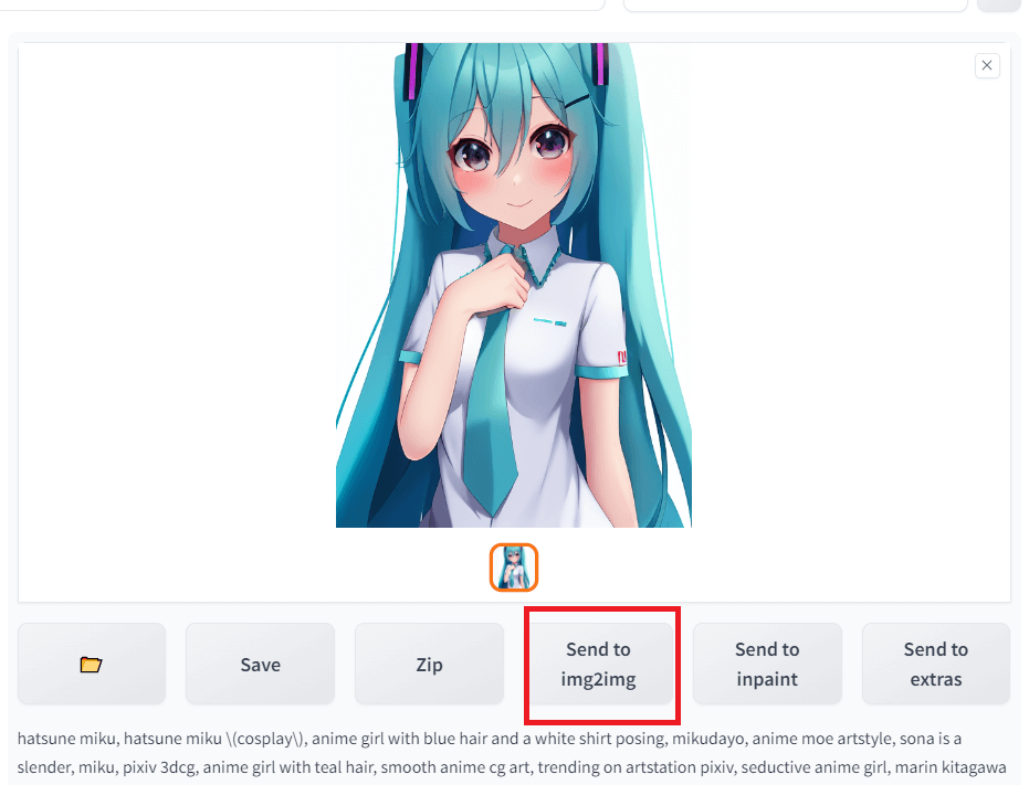 このように、自分のイメージにあった2次元系画像が生成できたら、Stable Diffusionの画面で“Send to img2img”をクリックします。