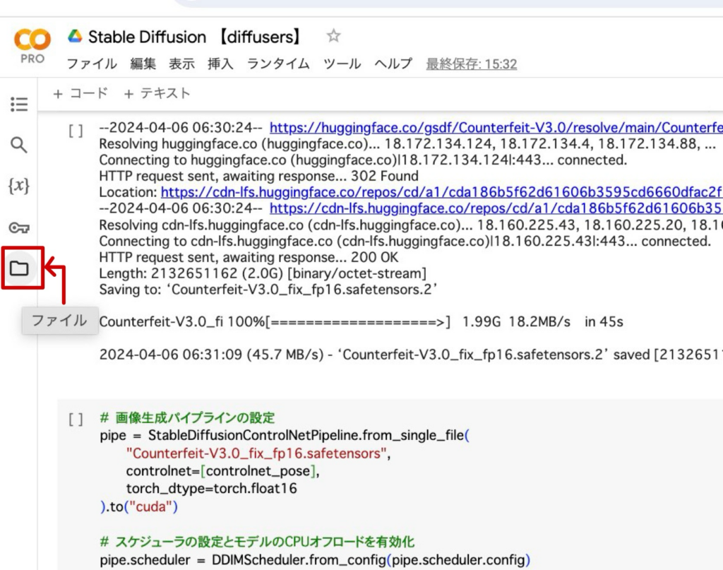 画像生成に使用する具体的なモデルファイルをインターネットからダウンロードしています。今回は、「Counterfeit-V3.0」を使用します。