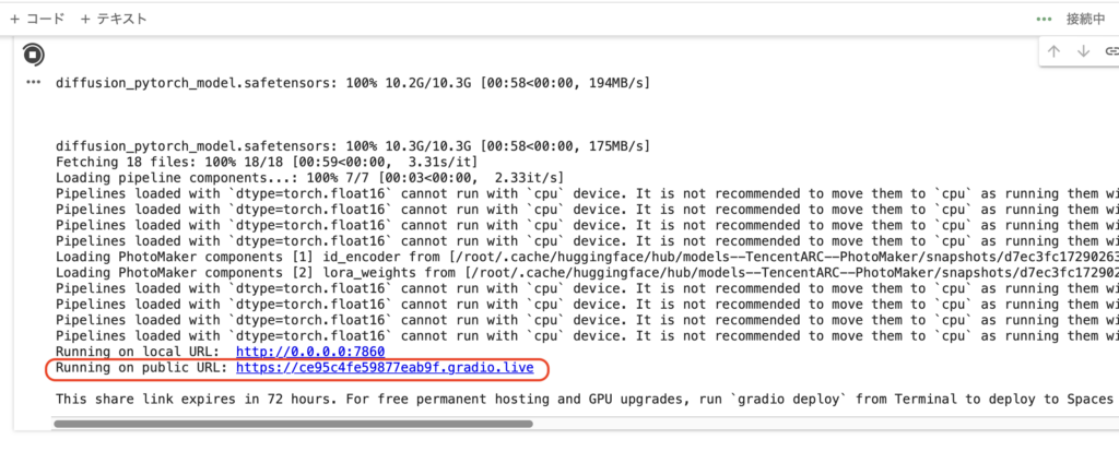 Running on public URL:〜 と表示がされますので、そのアドレスからStoryDiffusionの操作画面にジャンプしてください。