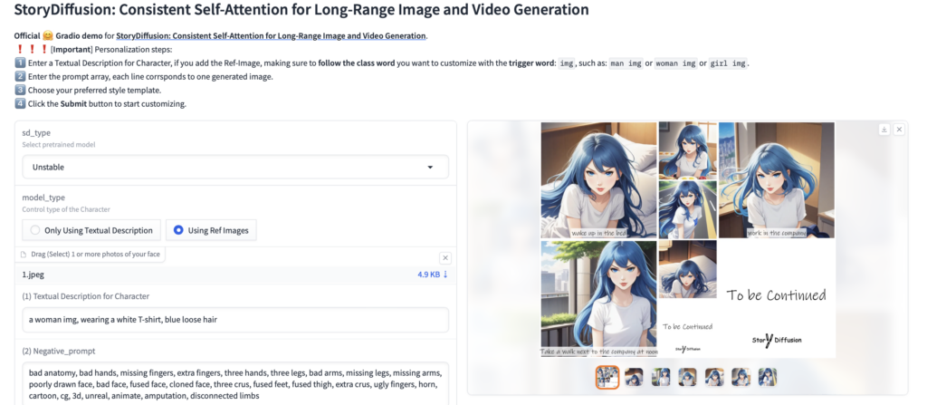 StoryDiffusionで物語を作ってみる