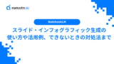 ※NotebookLMのスライド・インフォグラフィック生成に関しては、以下の記事で詳しく解説しています。
