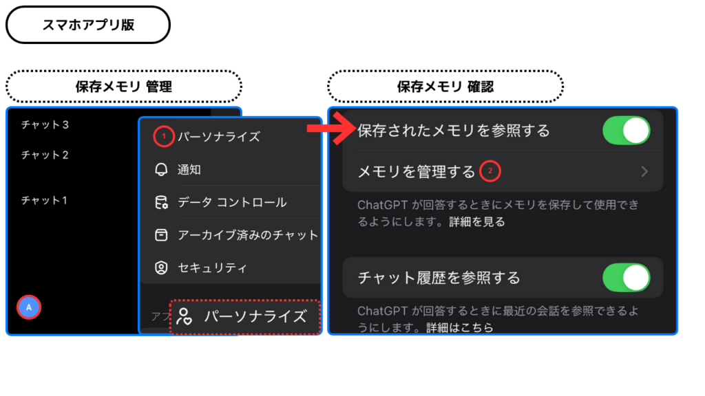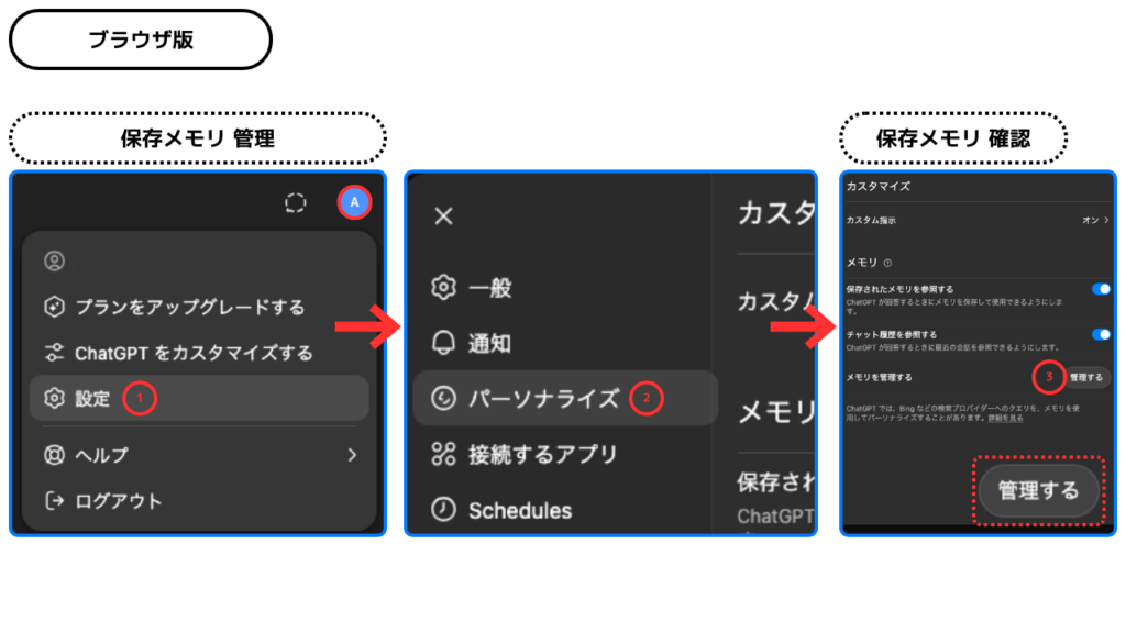 ChatGPTには「メモリ機能」があり、ユーザーとの会話内容や指示を保存し、次回以降の応答に活用します。