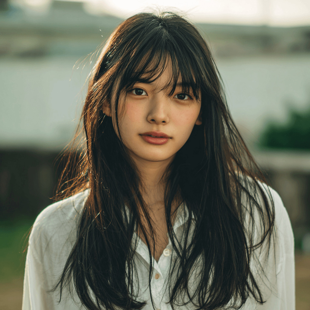 薄く軽い前髪は、柔らかくナチュラルな印象を演出できます。重たくなりすぎず、ふんわりとした雰囲気が魅力のスタイルですね。透明感のあるキャラクターや、儚げな雰囲気を出したい時におすすめです!
