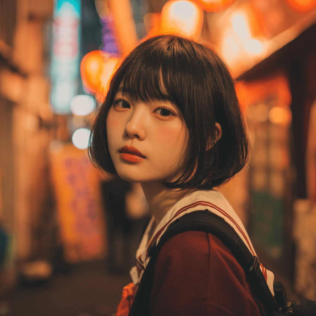 例:18 year old Japanese woman, bob cut, soft natural lighting, cinematic style