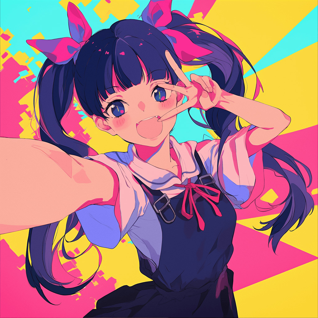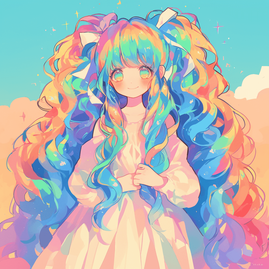 anime girl with twintails, colorful hair --niji 6 --ar 2:3ツインテールやアホ毛など、アニメ特有のスタイルを生成する際は必須のパラメータですね!