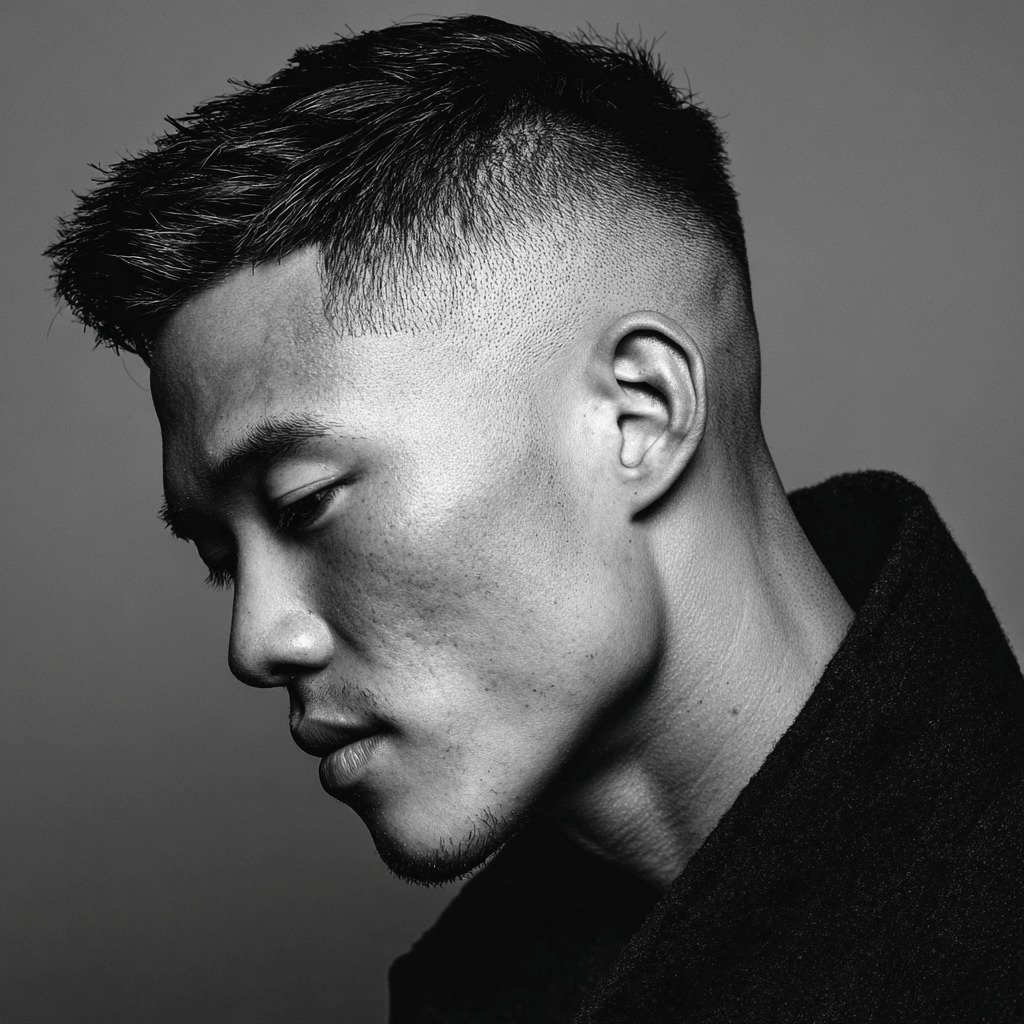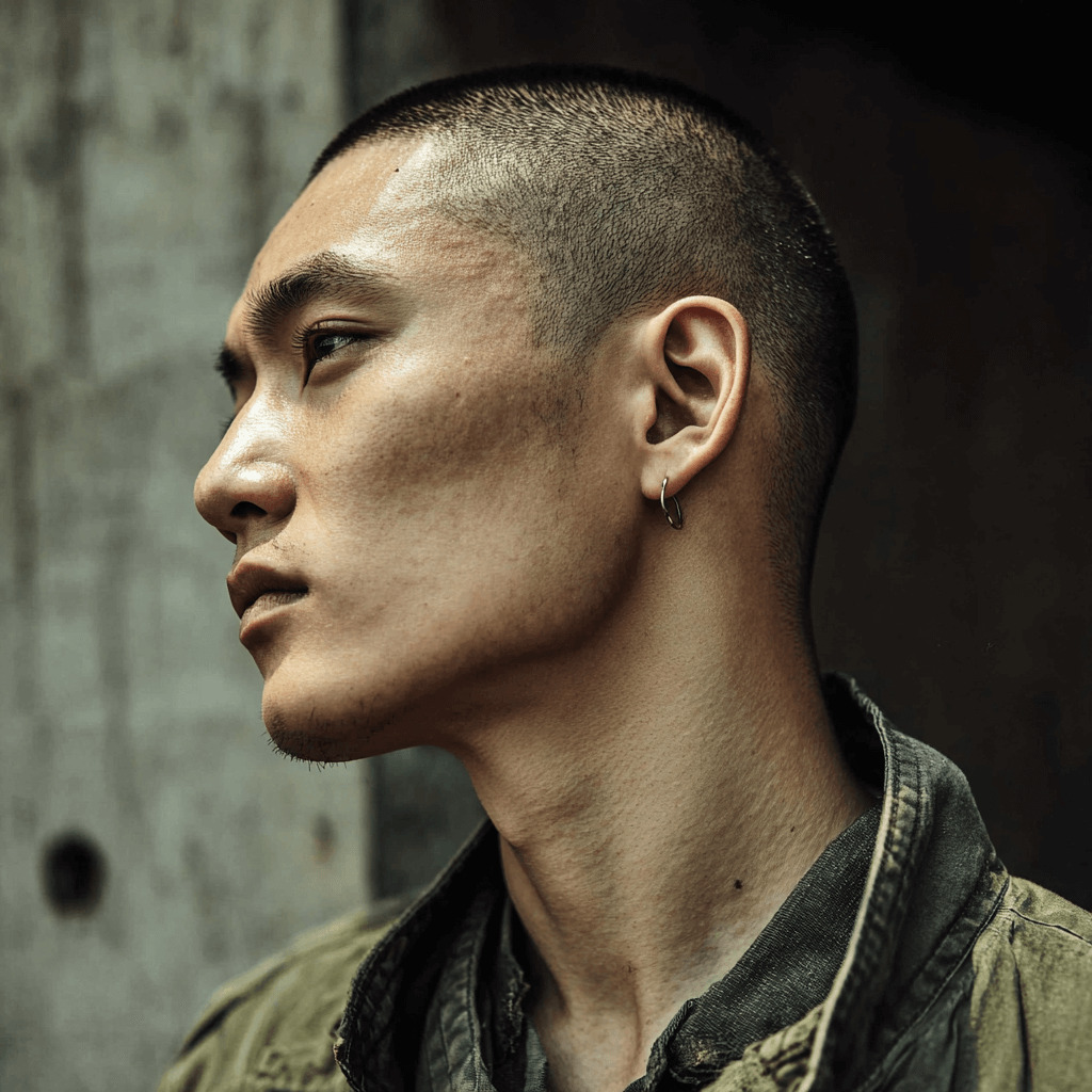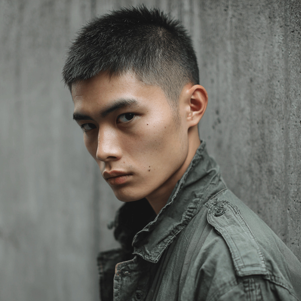 米軍でよく見られる短髪スタイルで、トップ部分がわずかに長く、サイドとバックは極端に短くカットされています。男らしさやタフな印象を与えたいキャラクターにぴったりの髪型です!