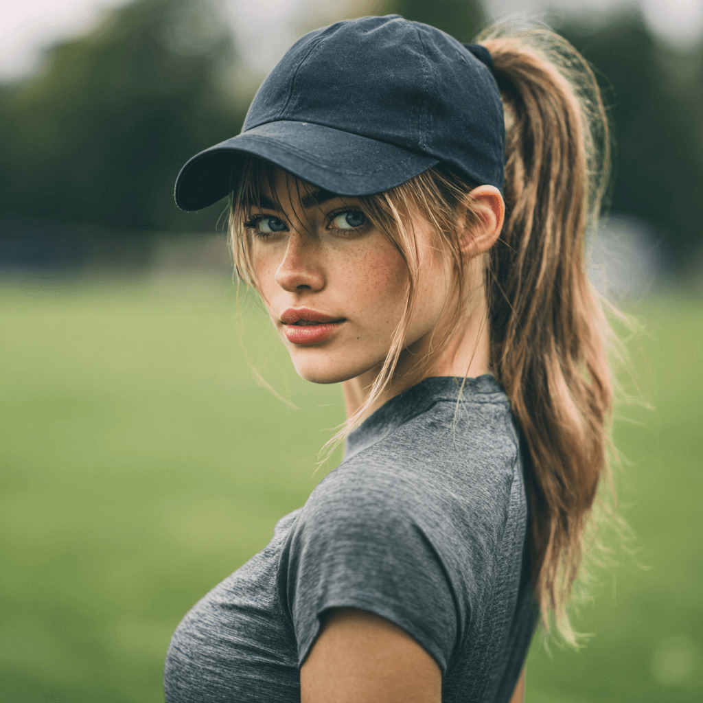 キャップから出したポニーテールは、カジュアルでスポーティーな雰囲気を演出できます。アクティブなシーンにぴったりのスタイルですね。ストリート系ファッションとの相性も抜群です!