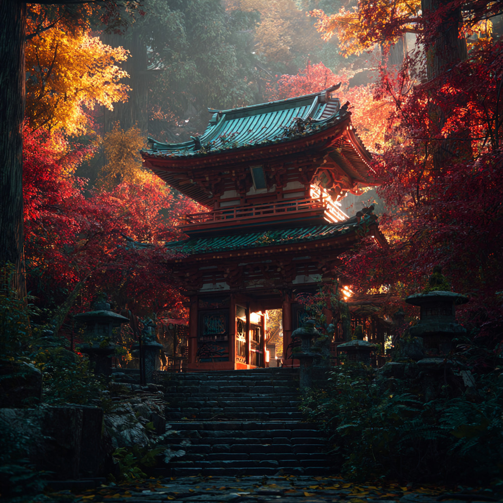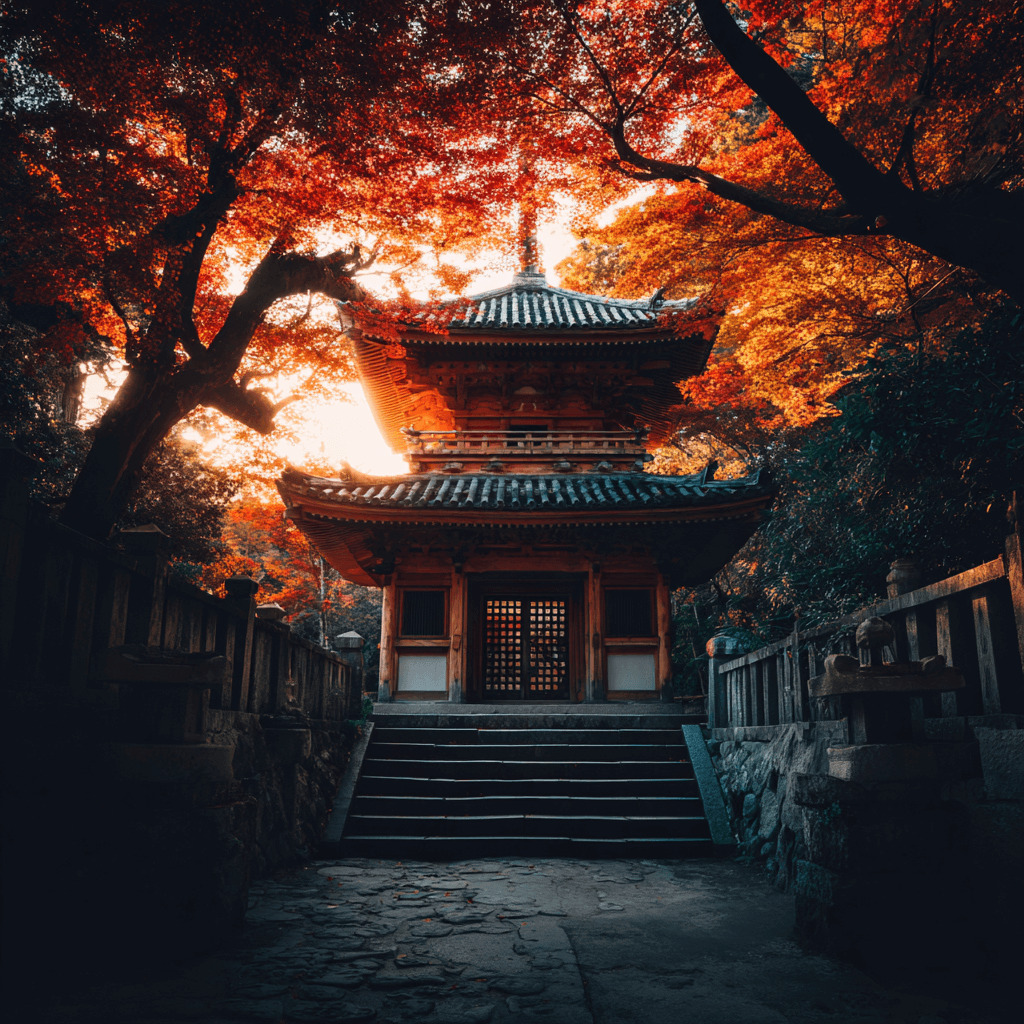 ancient temple in Japan --no modern elements, tourists, vehicles, signs, power lines