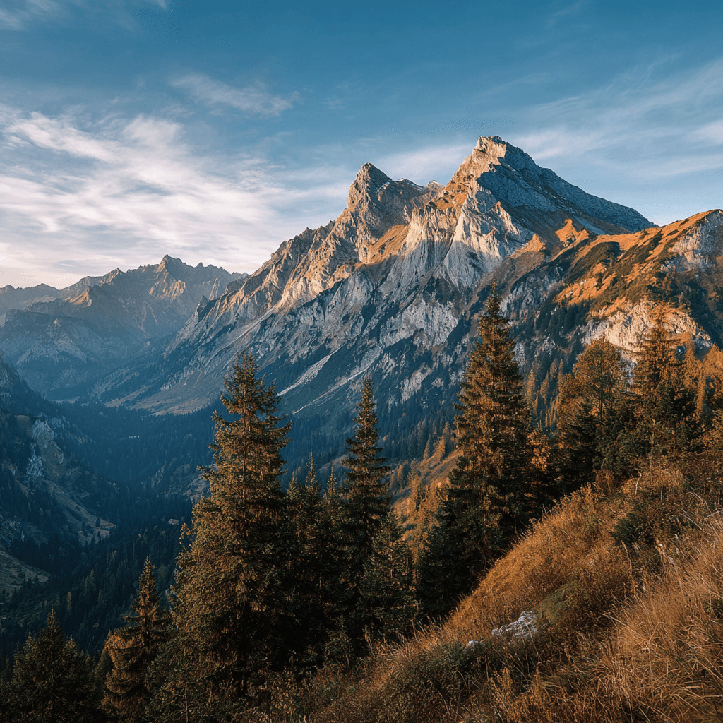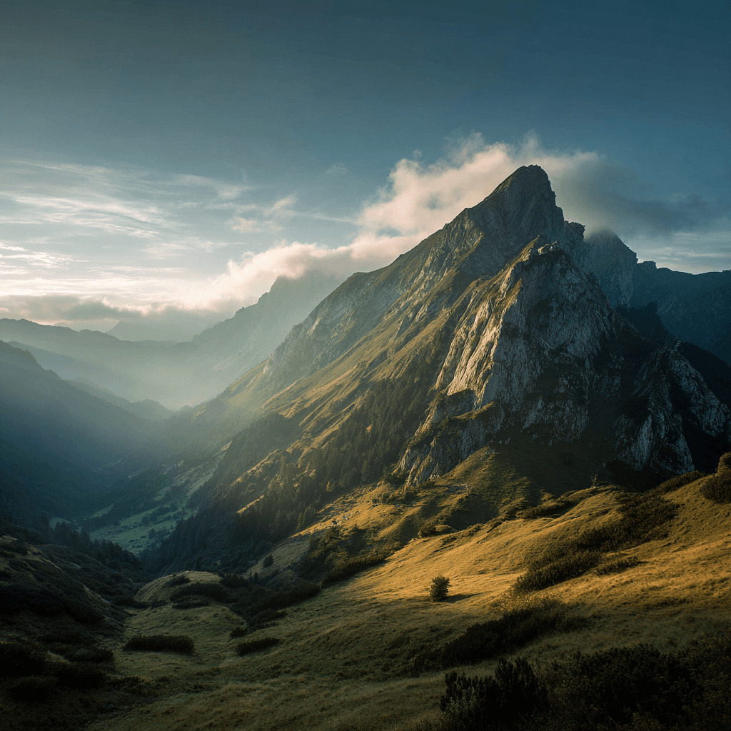 beautiful mountain landscape, morning light --no people, buildings, power lines, cars, roads