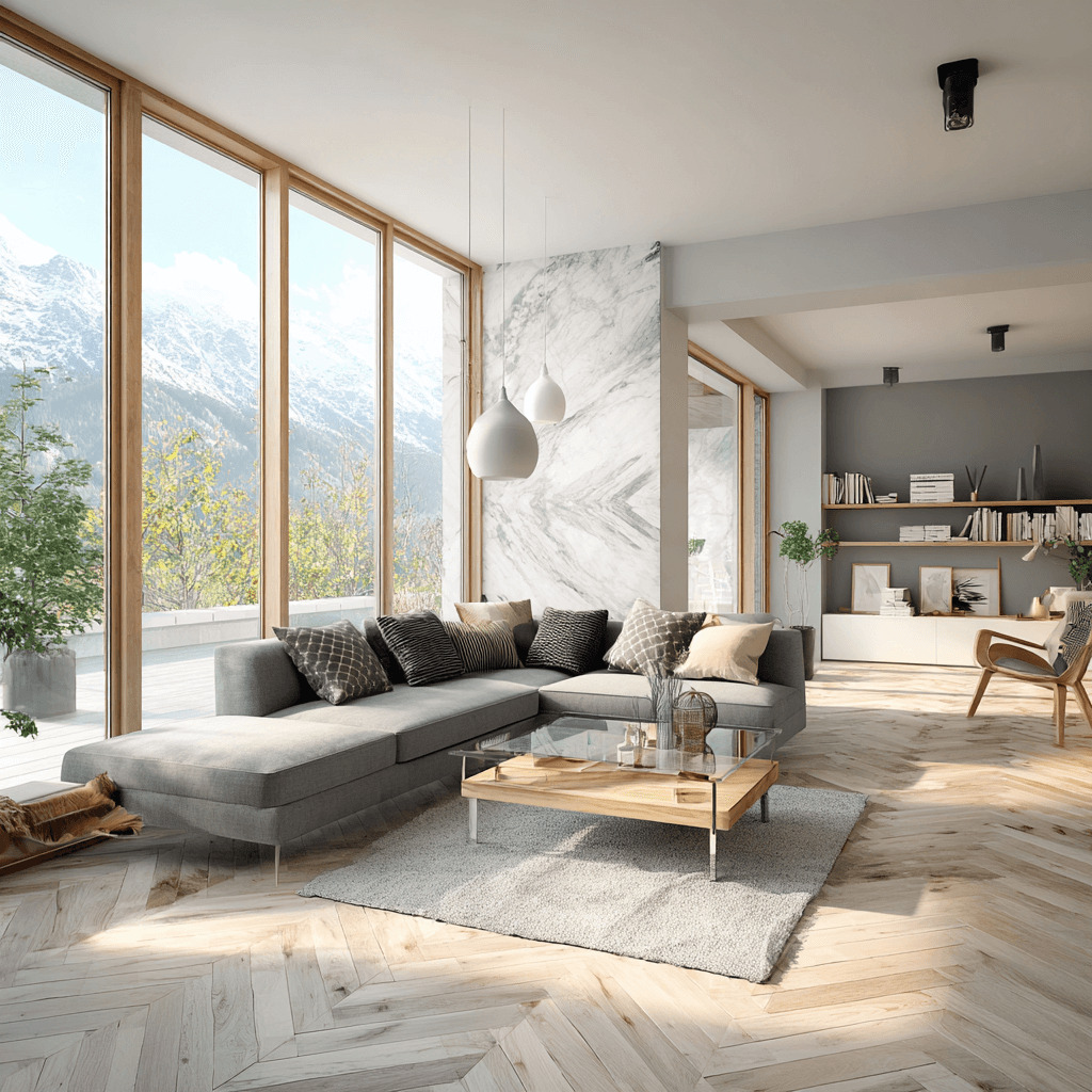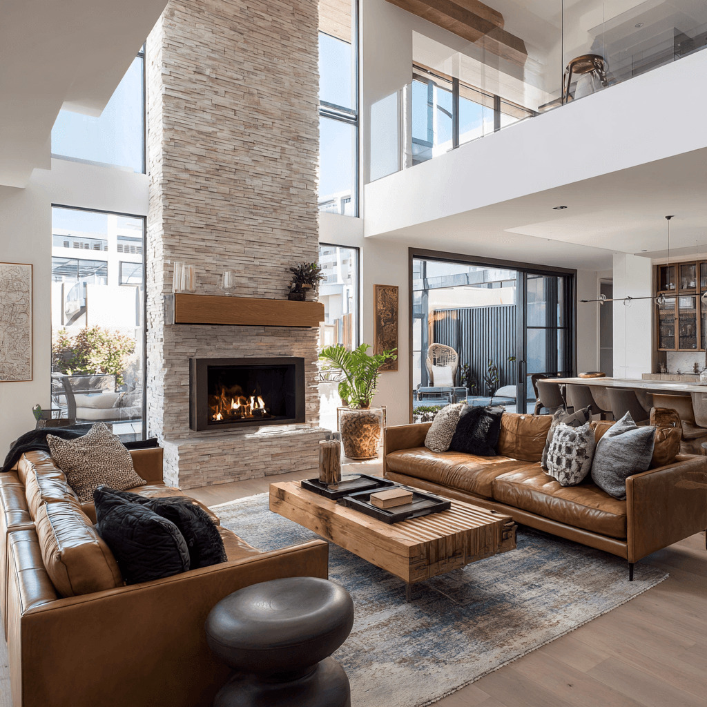 interior design, modern living room --no dark, shadows, dim lighting, gloomy