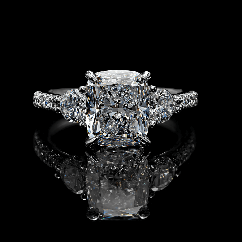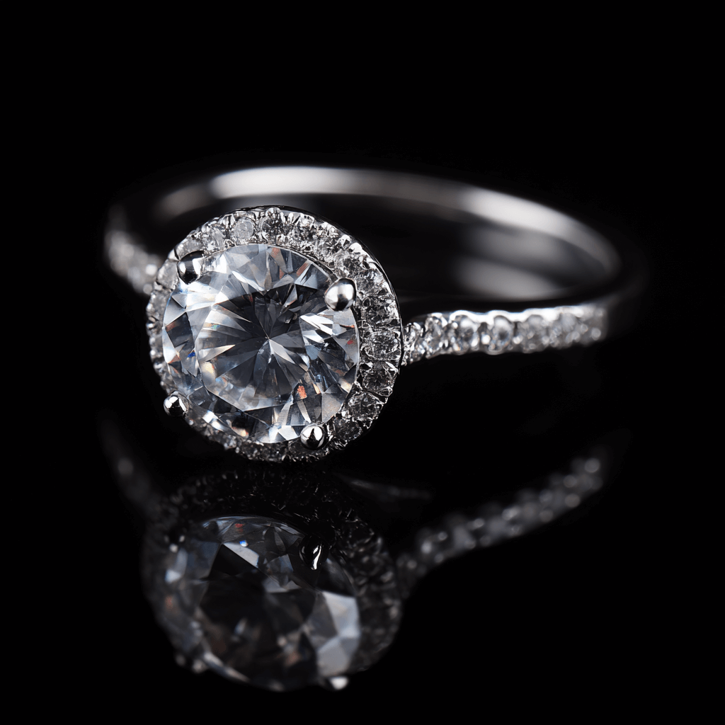 jewelry photo, diamond ring, pure black background --ar 1:1 --v 7
