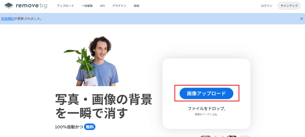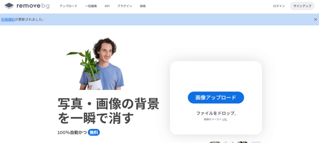 Remove.bgは、背景透過ツールの定番として有名なサービスです。とにかくシンプルで使いやすいのが特徴で、初心者の方にもおすすめです!