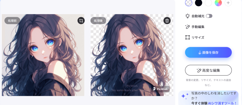 もし細かい調整が必要な場合はPicWish、とにかくシンプルに使いたい場合はRemove.bgという感じで使い分けるといいですね。