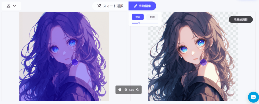 細かい髪の毛の処理や、複雑な形状の被写体でも、手動調整を使えばより完璧な仕上がりが期待できますよ!