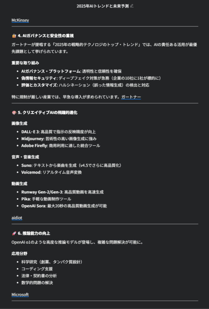 試しに、「2025年の人工知能トレンド」について検索してみました。