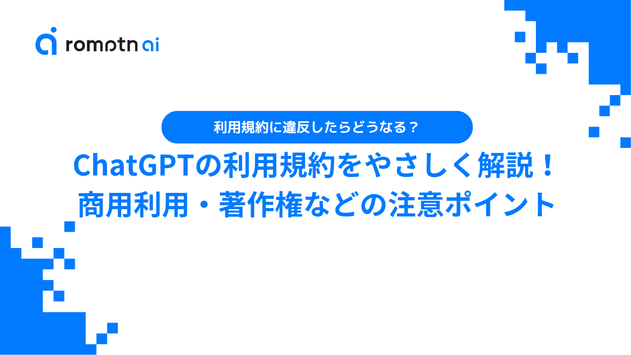 この記事では、OpenAI社が公開している利用規約の中でも商用利用や著作権などに関する内容を解説し、注意点をまとめました。ぜひ参考にしてください。
