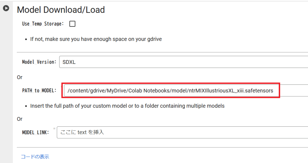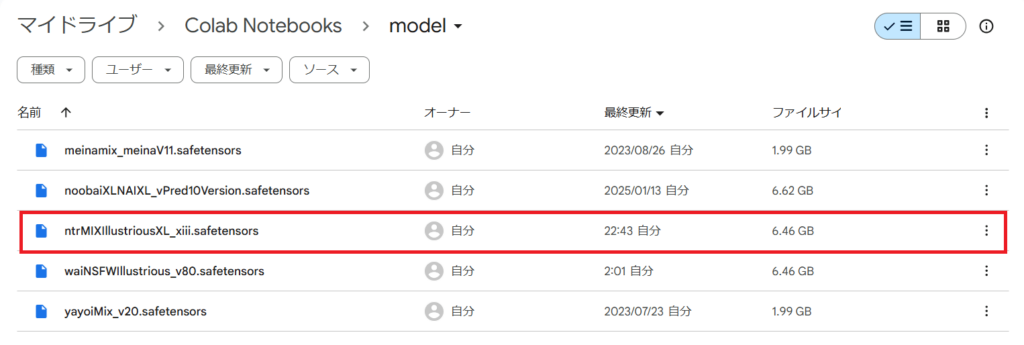 これで、Google ColabにNTR MIXのモデルをアップロードできました。