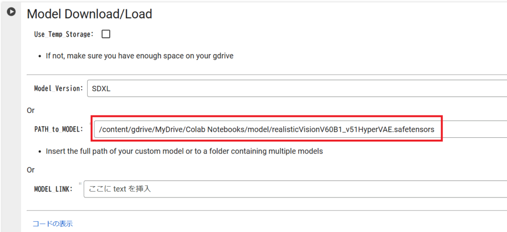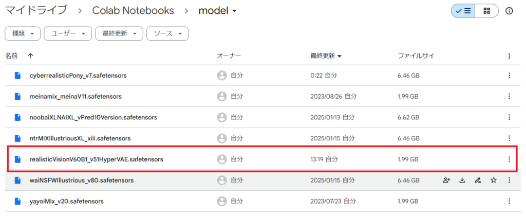 これで、Google ColabにRealistic Visionのモデルをアップロードできました。
