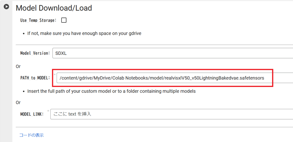 あとは、Google ColabでWebUIを立ち上げる際、Model Download/LoadにRealVisXLのモデルを忘れずに選んでください。導入の仕方はこちらを参考にしてください。