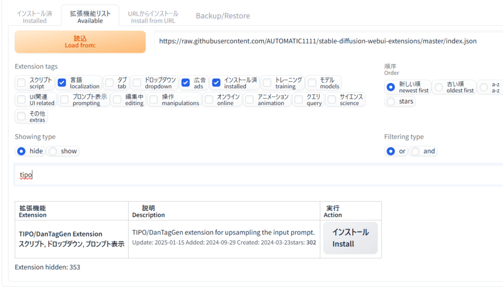 - Stable Diffusionの拡張機能「TIPO」の導入方法