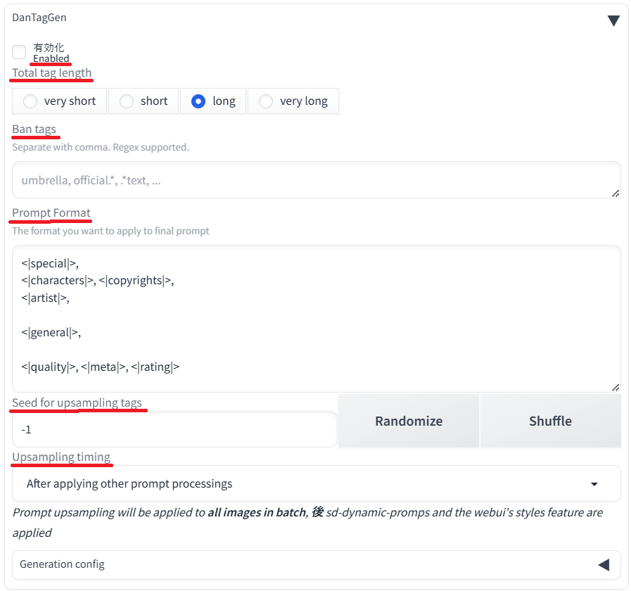 - enable: 生成時に自動でプロンプトを生成するかどうか