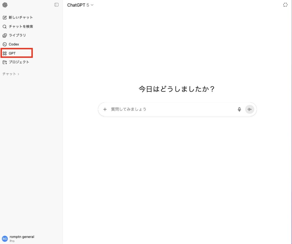 ChatGPTのトップ画面から「GPT」を選択し、使用したいGPTsを検索します。
