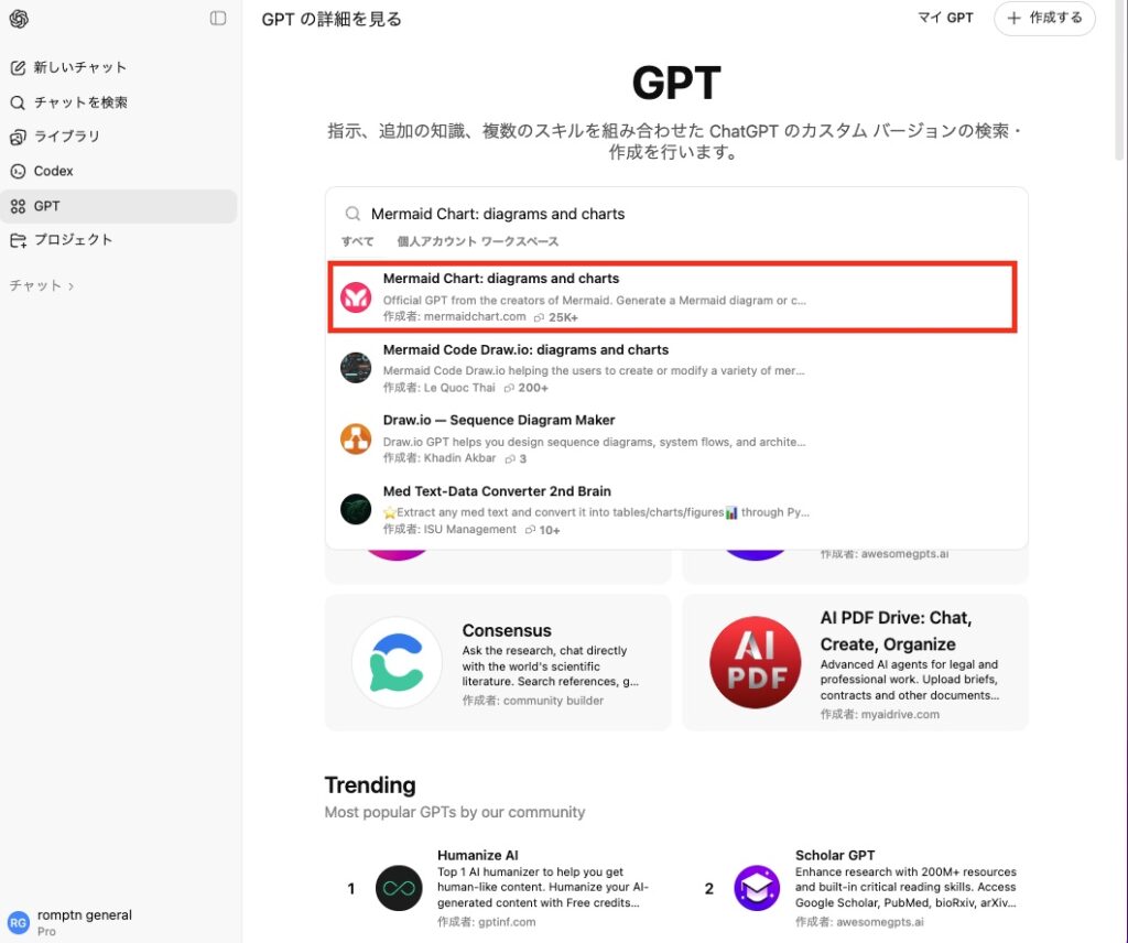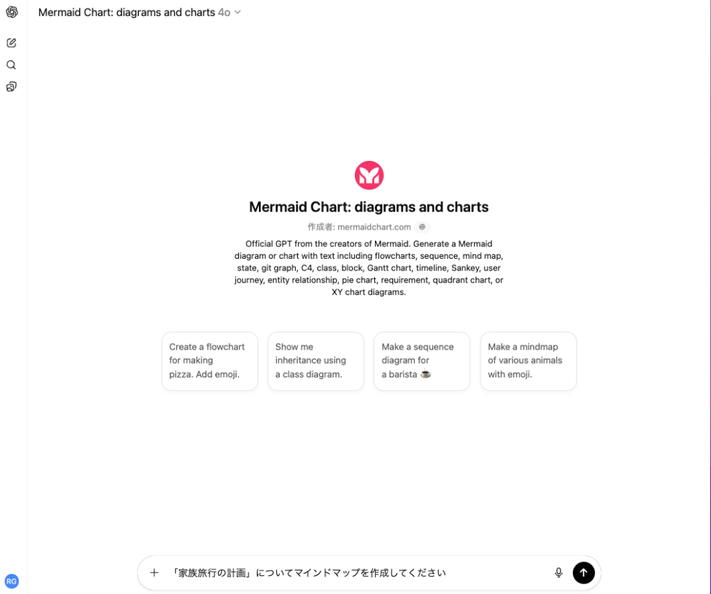 「Mermaid Chart: diagrams and charts」をクリックし、「チャットを開始する」でスタートします。