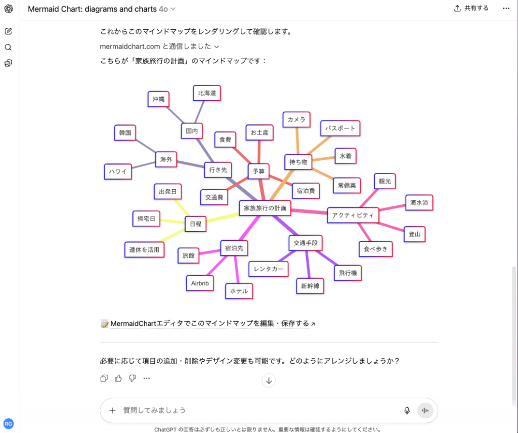 ChatGPTでマインドマップを作成するには、複数の選択肢があります。
