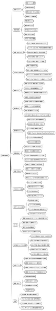 マインドマップの見やすさは、階層構造の深さと各階層の項目数に大きく影響されます。プロンプトで具体的な数値を指定することで、情報量をコントロールできます。
