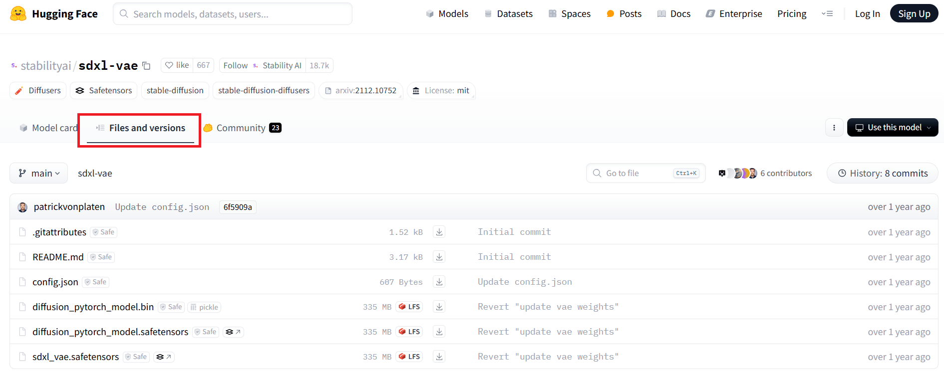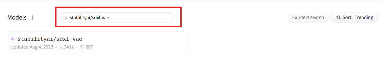 - 検索窓に「stabilityai/sdxl-vae」などのVAE名を入力