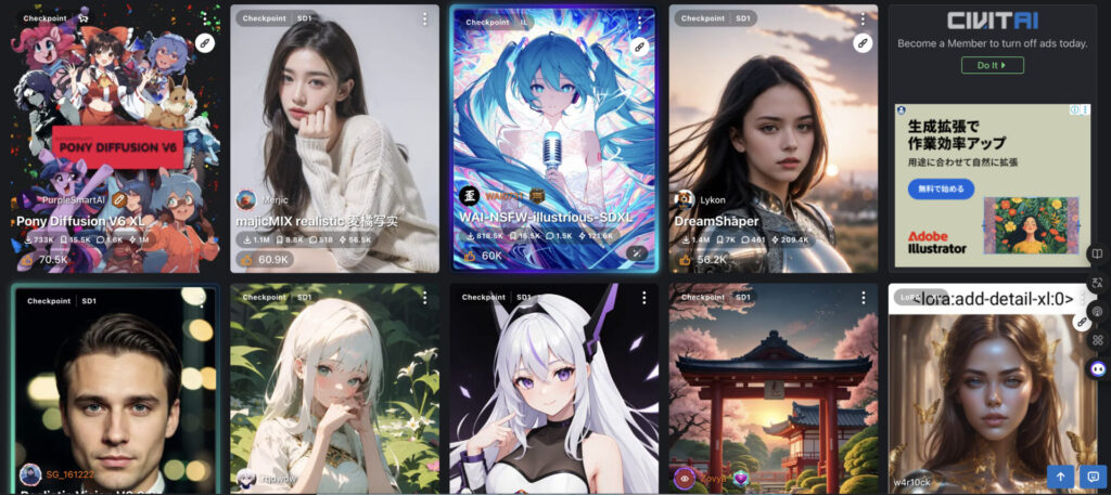 ※Civitaiの使い方については、下記記事で詳しく解説しています。
