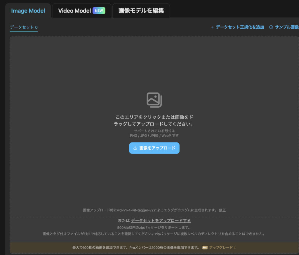 ④学習用画像をアップロード(10〜100枚)