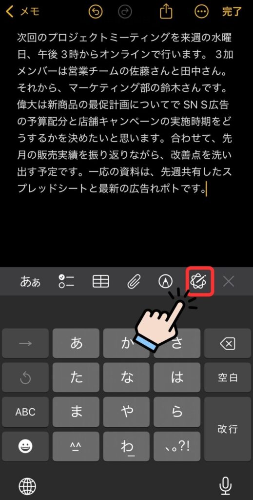 メモアプリで実際に使ってみた様子がこちらです。