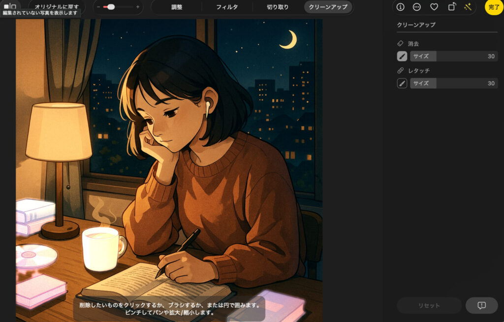 「クリーンアップ」は、写真に写り込んだ不要な人や物を簡単に消去できる機能です。