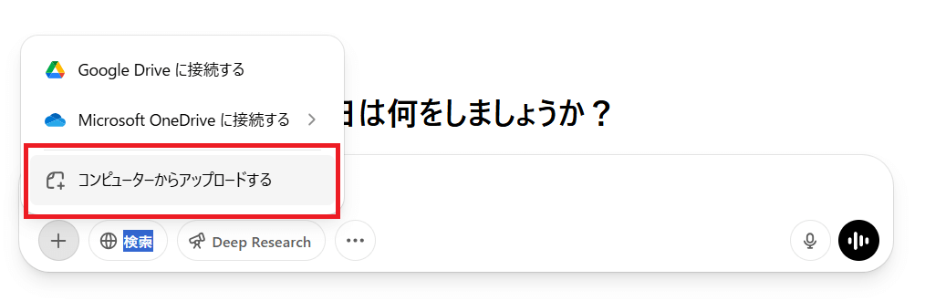 チャット画面の左下にある「+」ボタンを押して、「コンピューターからアップロードする」から顔面採点したい写真を選びましょう。