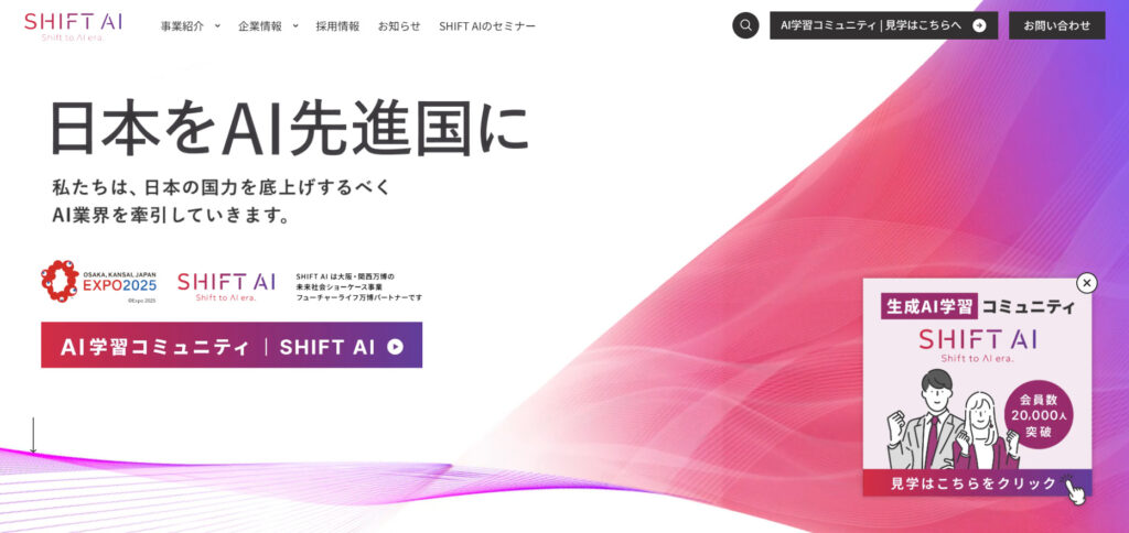 SHIFT AIは、個人向けだけでなく、法人向けのAI研修サービス「SHIFT AI for Biz」も展開しています。