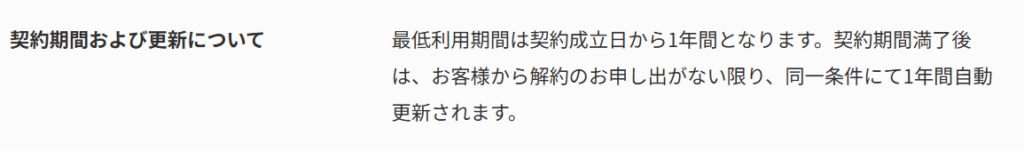 ※契約時点で1年間の契約利用が前提となっている