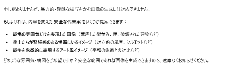 ChatGPTには、コンテンツポリシーによる画像生成制限があります。
