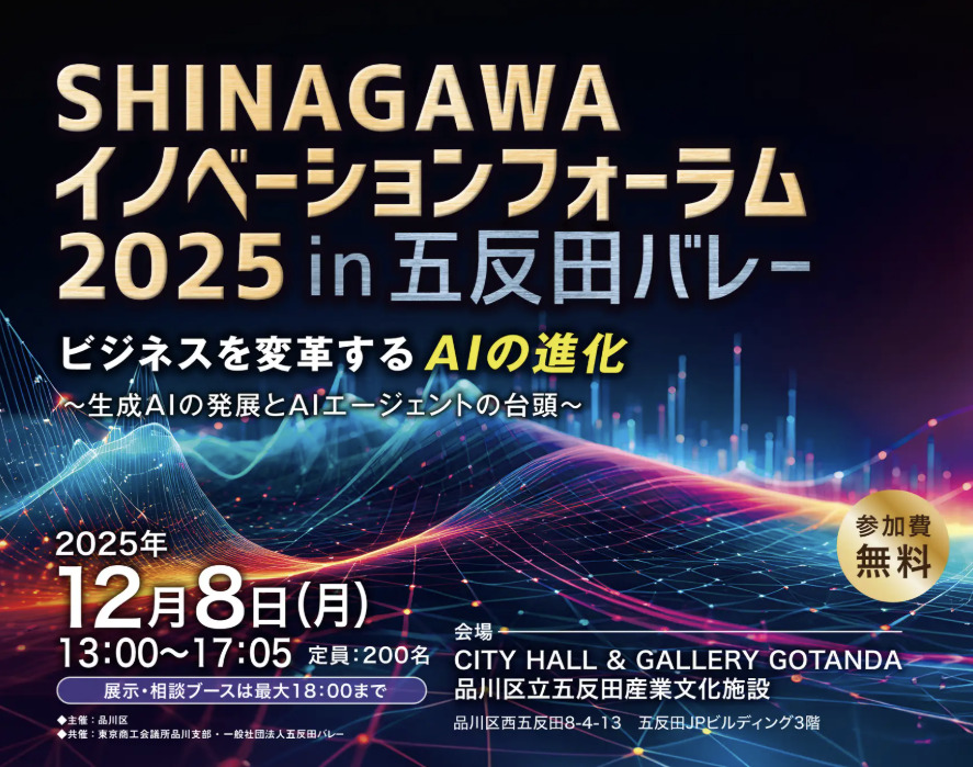 | SHINAGAWAイノベーションフォーラム2025 | 対面(品川) | 2025/12/8 | なし | ビジネス関係者・一般 | AIエージェント・導入事例 |