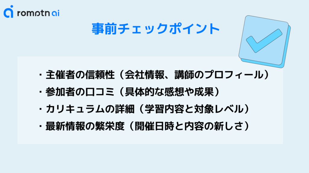 - 広告色の強いセミナーもあるため、実際の学習価値を冷静に見極める必要がある