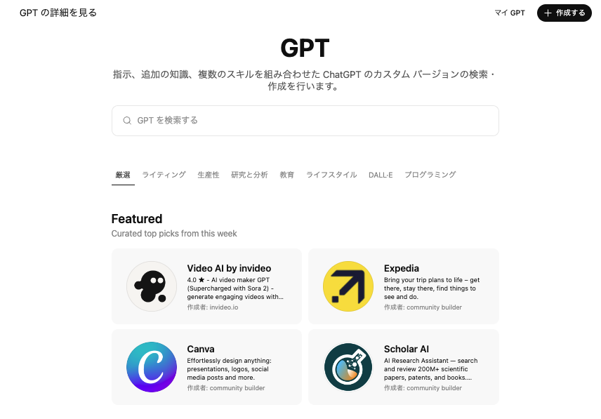 GPTsは個人が作成・公開しているものも多いため、品質にばらつきがある点は注意してください。いくつか試してみて、自分に合うものを見つけるのがおすすめです。