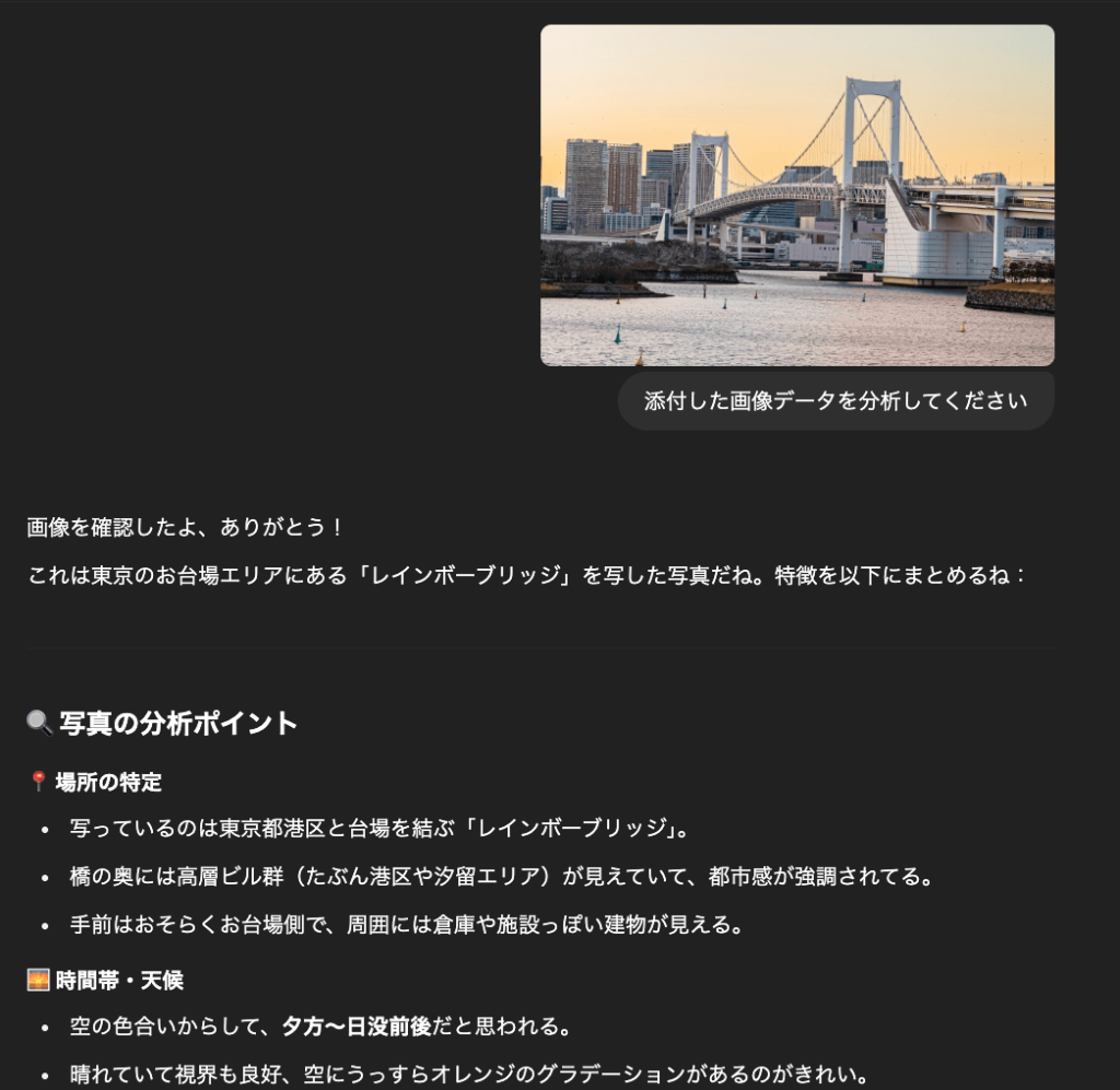 アップロードされた画像を認識し内容を説明したり、特定の情報を抽出したりする機能をもっています。