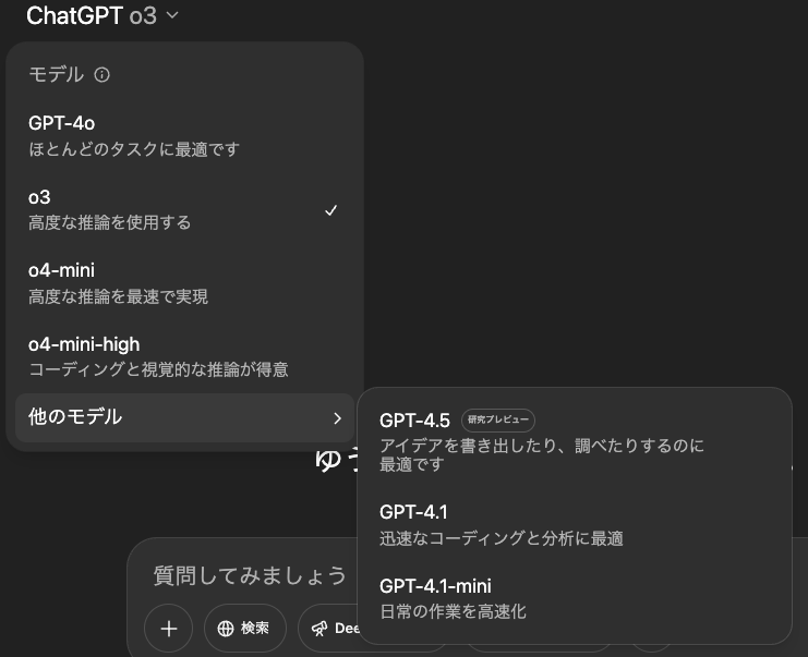 - 基本モデル(GPT4.1):先生のようにていねいに説明してくれるタイプ